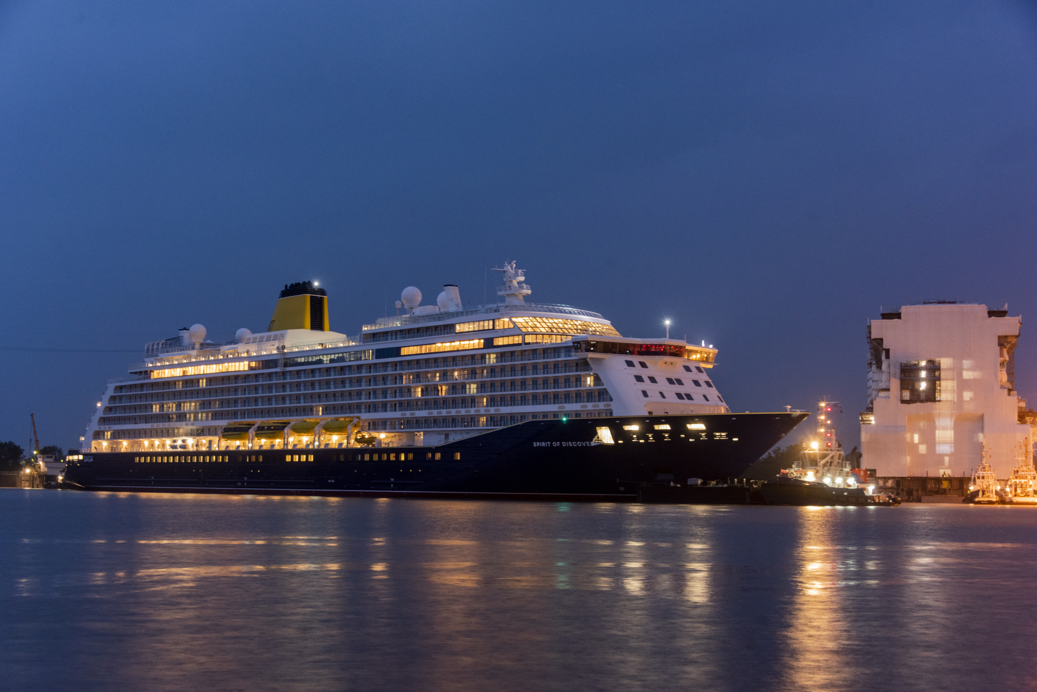 Nigel Blanks, COO, Saga Cruises said: “Our major milestones for Saga Cruises and Spirit of Discovery are now coming thick and fast and it is amazing to see her complete her conveyance towards the North Sea. This ongoing journey sees everyone at Saga Cruises pioneering the future of British boutique cruising, creating a host of unique, new experiences, both ashore and at sea, and providing a fresh new concept in the global cruising market. Our thanks go to the impeccable team at Meyer Werft for all their ongoing work on our iconic, stunning new ship.”